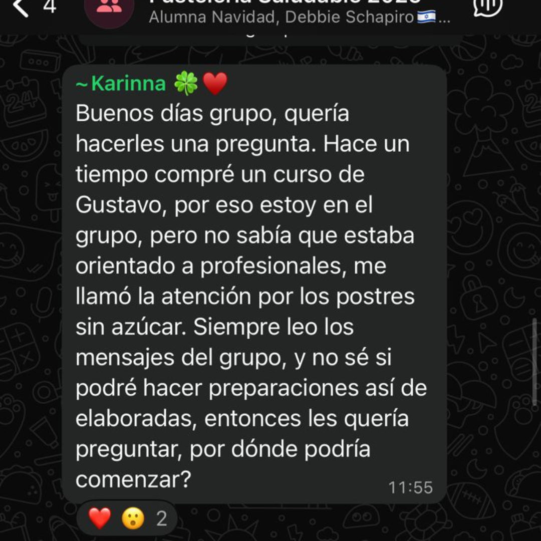 Reunimos lo mejor de nuestros cursos en una sola experiencia: aprenderás a preparar recetas sin azúcar, dominarás la pastelería sin gluten, descubrirás un módulo exclusivo de chocolatería saludable que no encontrarás en otros cursos y, además, te enseñaremos a emprender para que puedas empezar a vender lo que haces. Todo paso a paso, desde lo más básico hasta que puedas crear tus propias recetas y convertir esta pasión en un negocio.